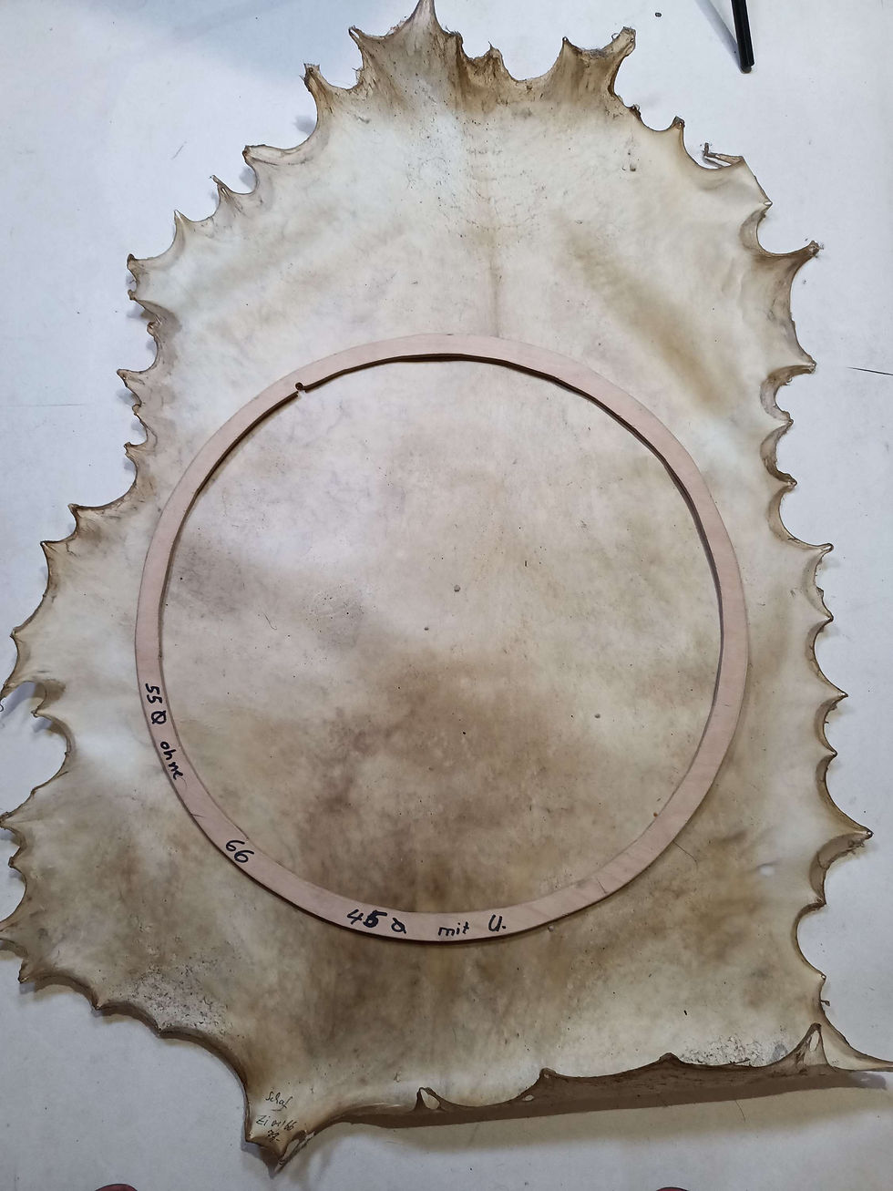 Die Größe der Haut steht jetzt nach dem Schrägstrich (z.B 27/68 bedeutet Artikel 27/ Größe 68cm Durchmesser der Haut).